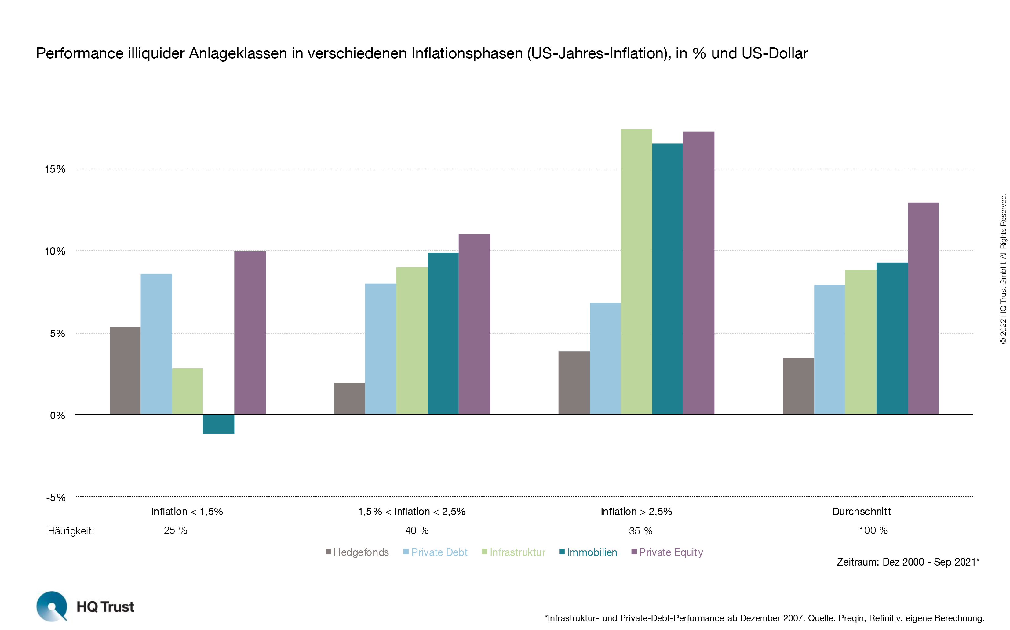 Illiquide Anlageklassen wie Immobilien oder Private Equity konnten in Zeiten höherer Inflation überdurchschnittliche Renditen erzielen.